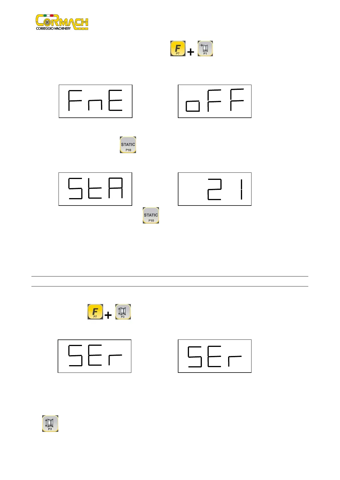 2. Press the [F+P3] keys The machine will enter SERVICE mode and display the Ser Ser messages. See