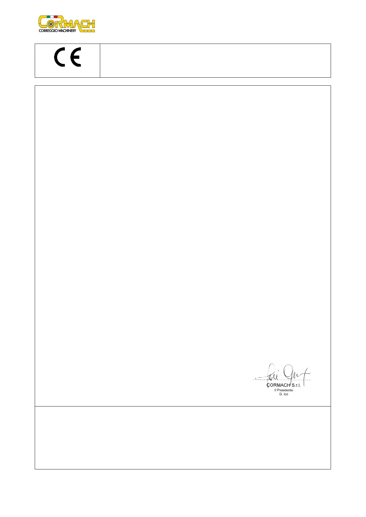 Cormach S.r.l., located in Via A. Pignedoli, 2 – 42015 Correggio (RE) – Italy