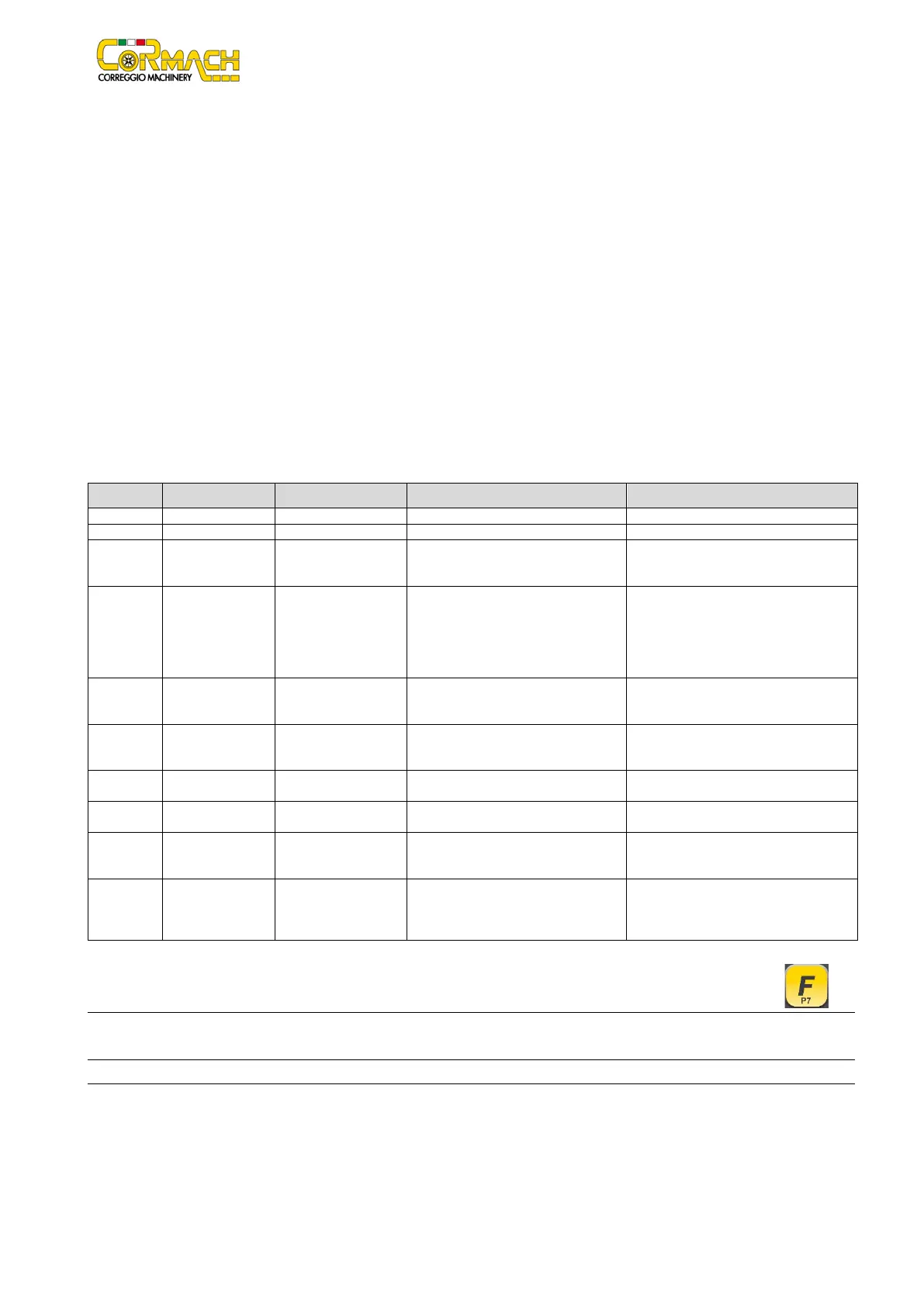 The machine exits the error code display when the operator presses any key (except for [P7] ).