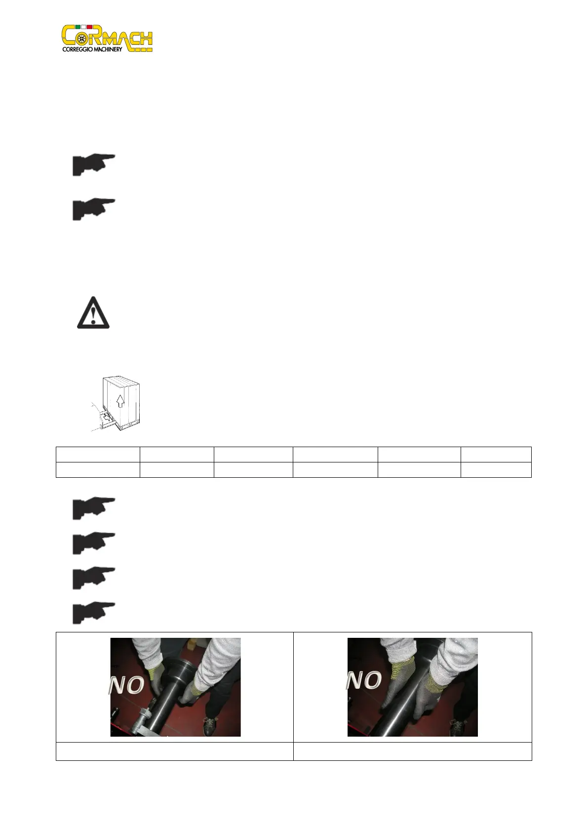 Transport and handling must be carried out ONLY BY AUTHORIZED PERSONNEL, with pallet truck
