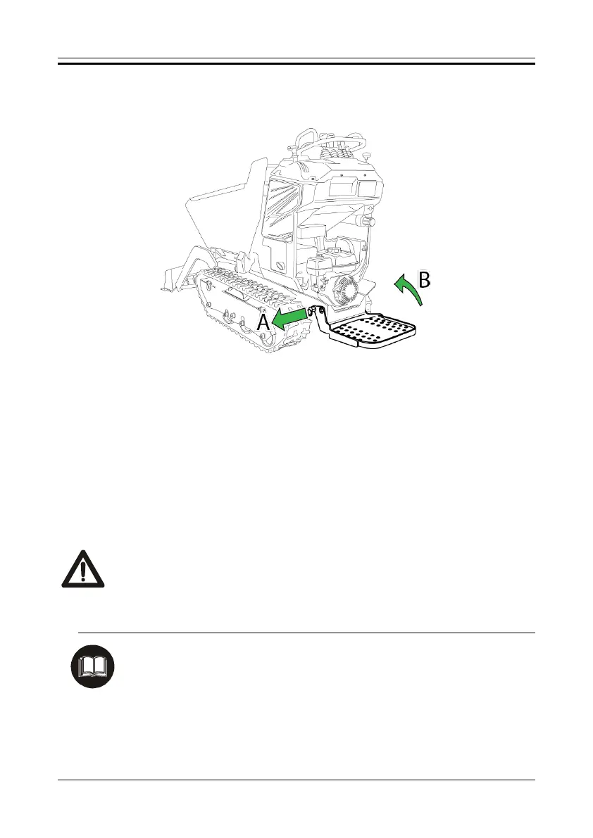 To lower the platform: pull the ring of the spring-loaded pin “A” outwards