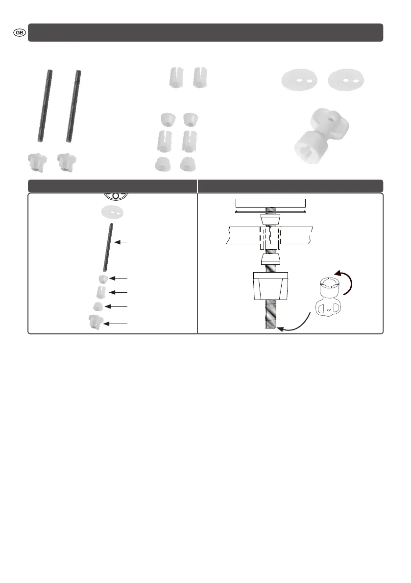 7. Insert the threaded rod with spherical washer and dowels into the mounting hole and then