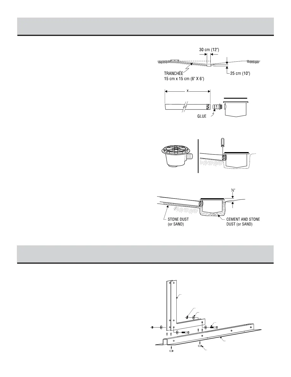 a 15 cm (6") wide trench. Place the removed soil aside to be used