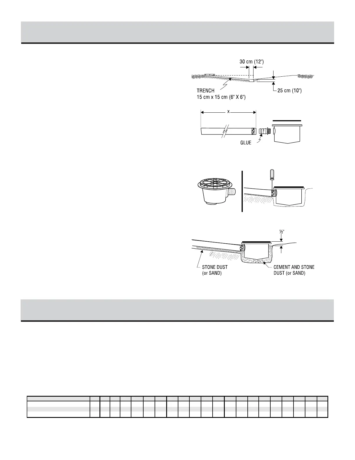 a 15 cm (6") wide trench. Place the removed soil aside to be used