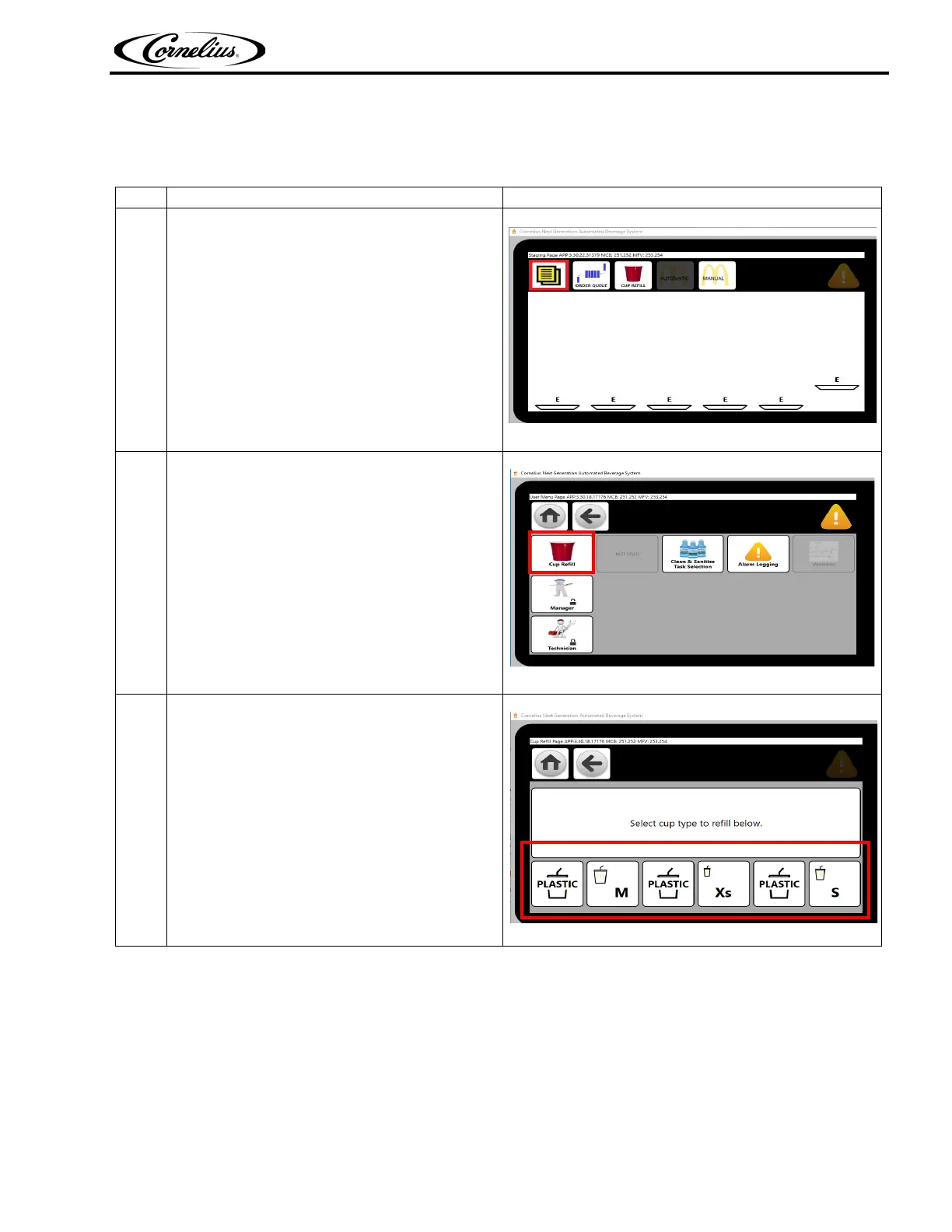 If in menu page select Cup Refill icon as