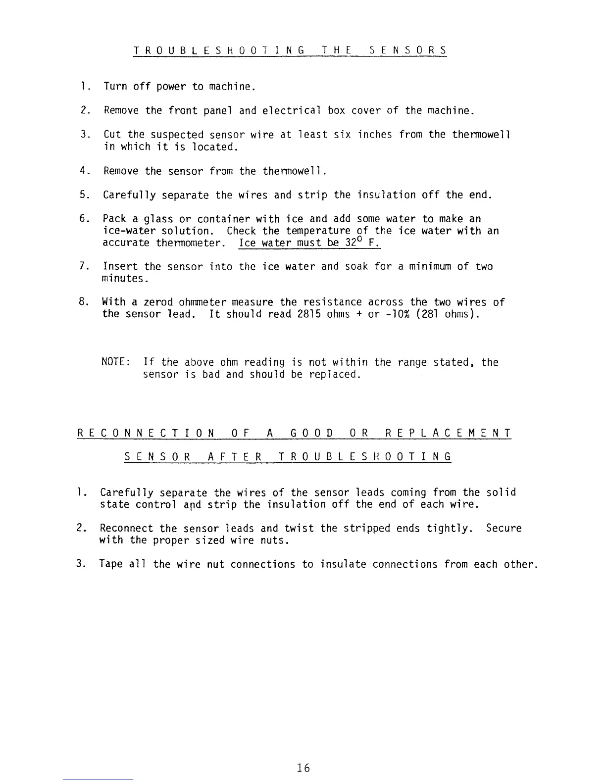 Cornelius AC-300 - Troubleshooting the Sensors; Reconnection of Sensor After Troubleshooting