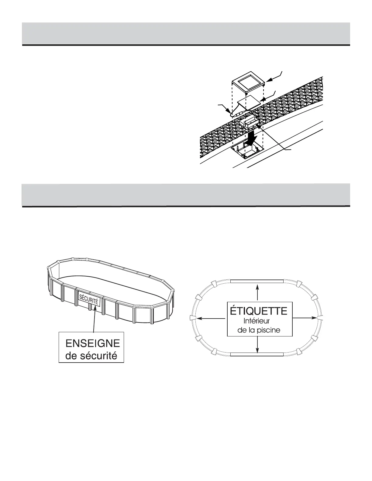 Installez trois (3) étiquettes de sécurité à l’intérieur de la piscine de