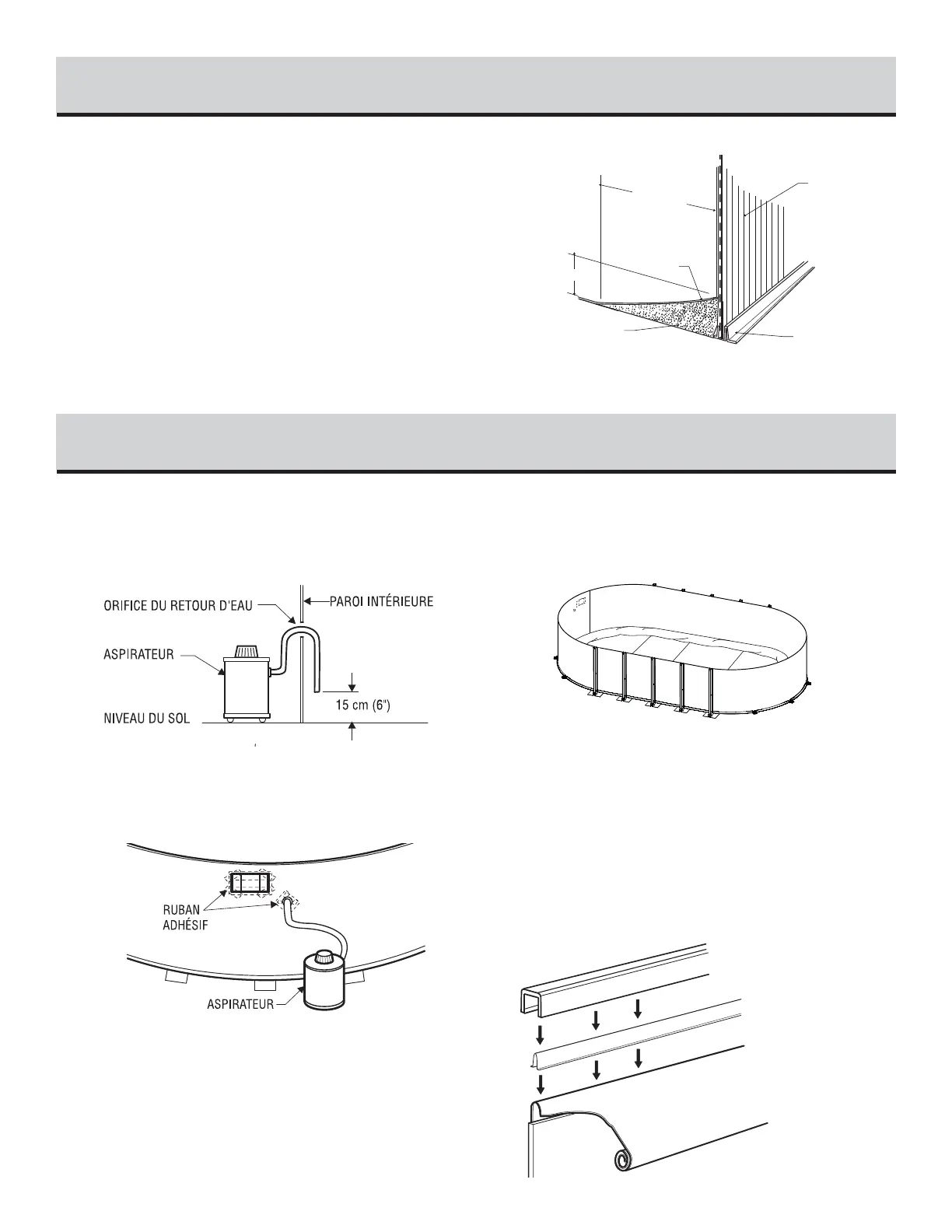 Déposez la toile pliée au centre de la piscine perpendi-culaire à l'ori-