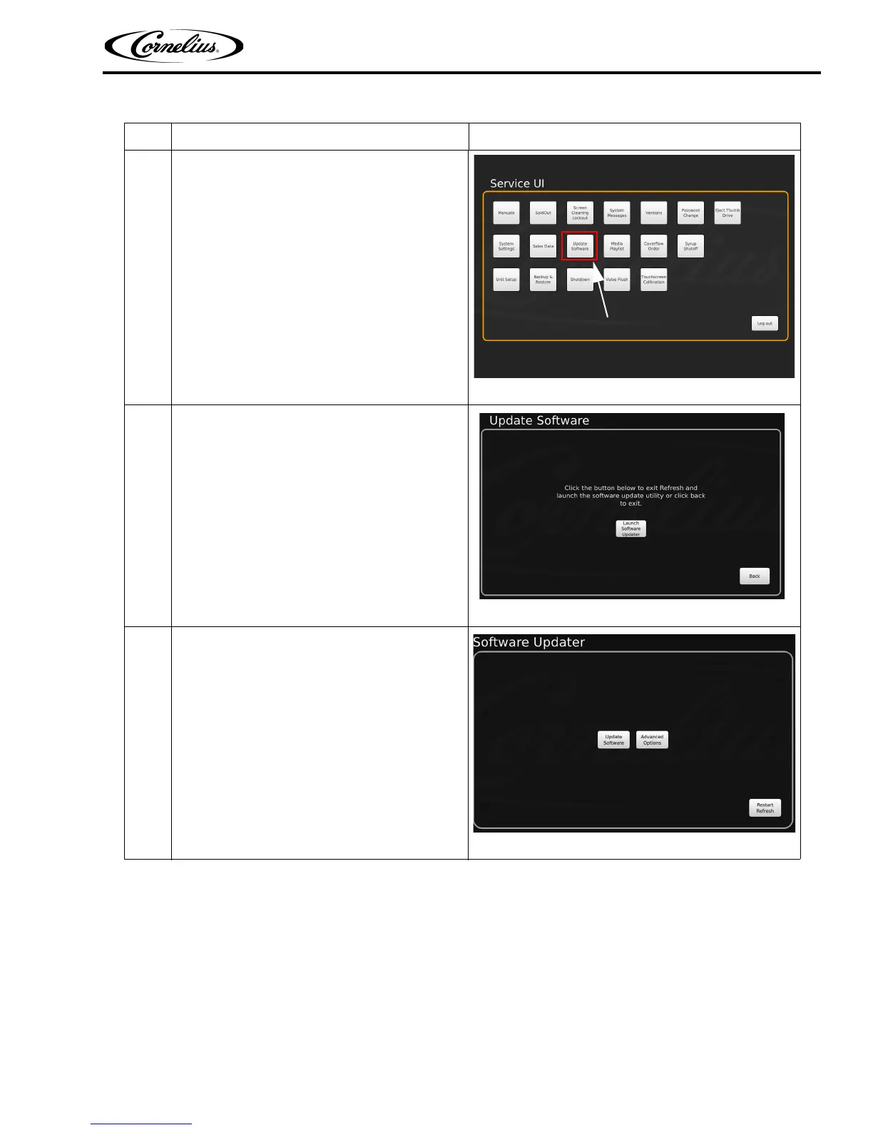 The Update Software screen is displayed. Press
