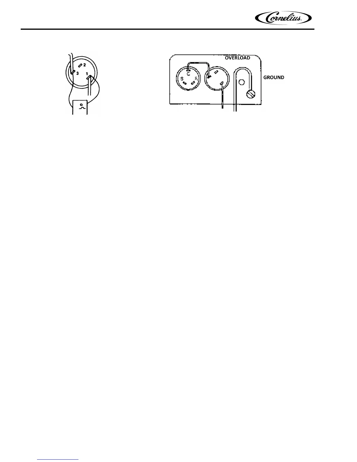 4. Check between screw terminal on the overload and “C” on the compressor. Check and repair the lead or con-