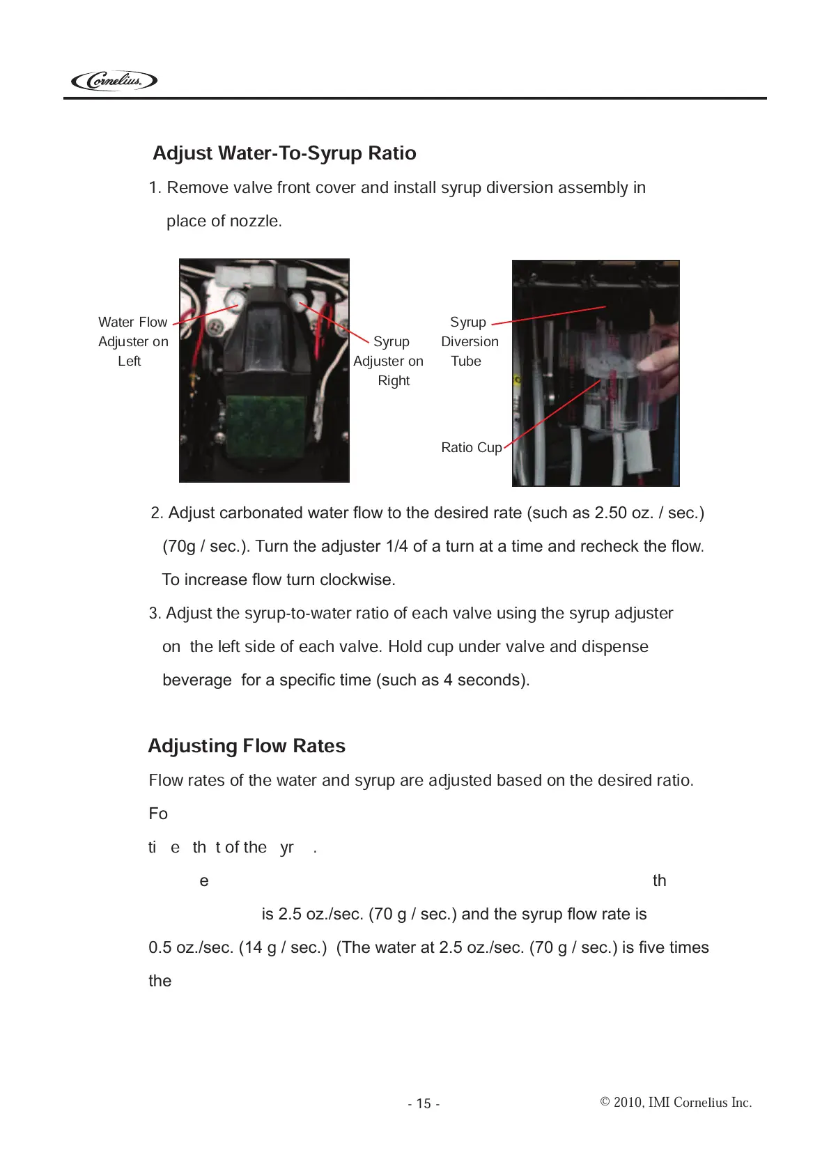 water !ow rate is 2.5 oz./sec. (70 g / sec.) and the syrup !ow rate is