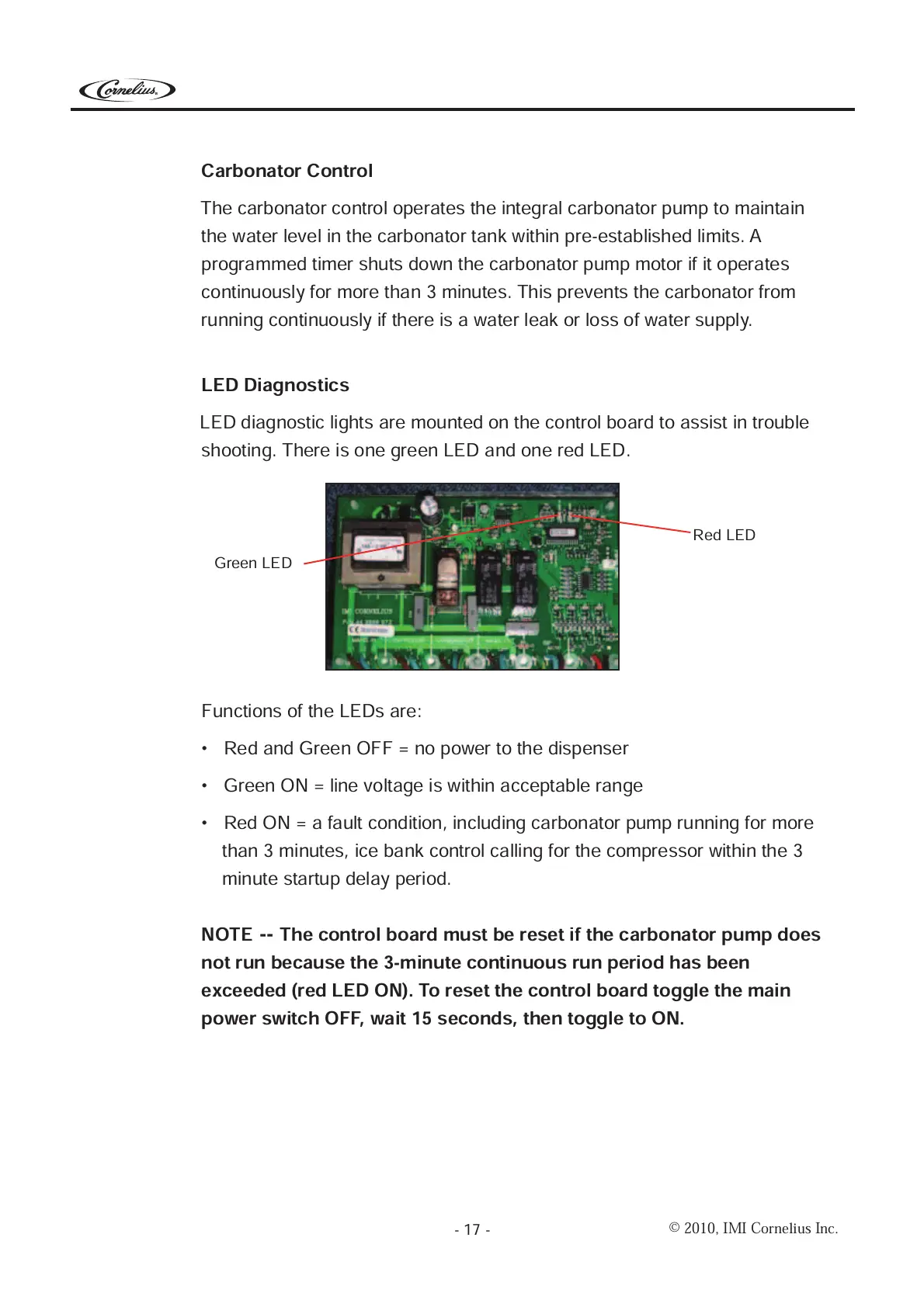 LED diagnostic lights are mounted on the control board to assist in trouble