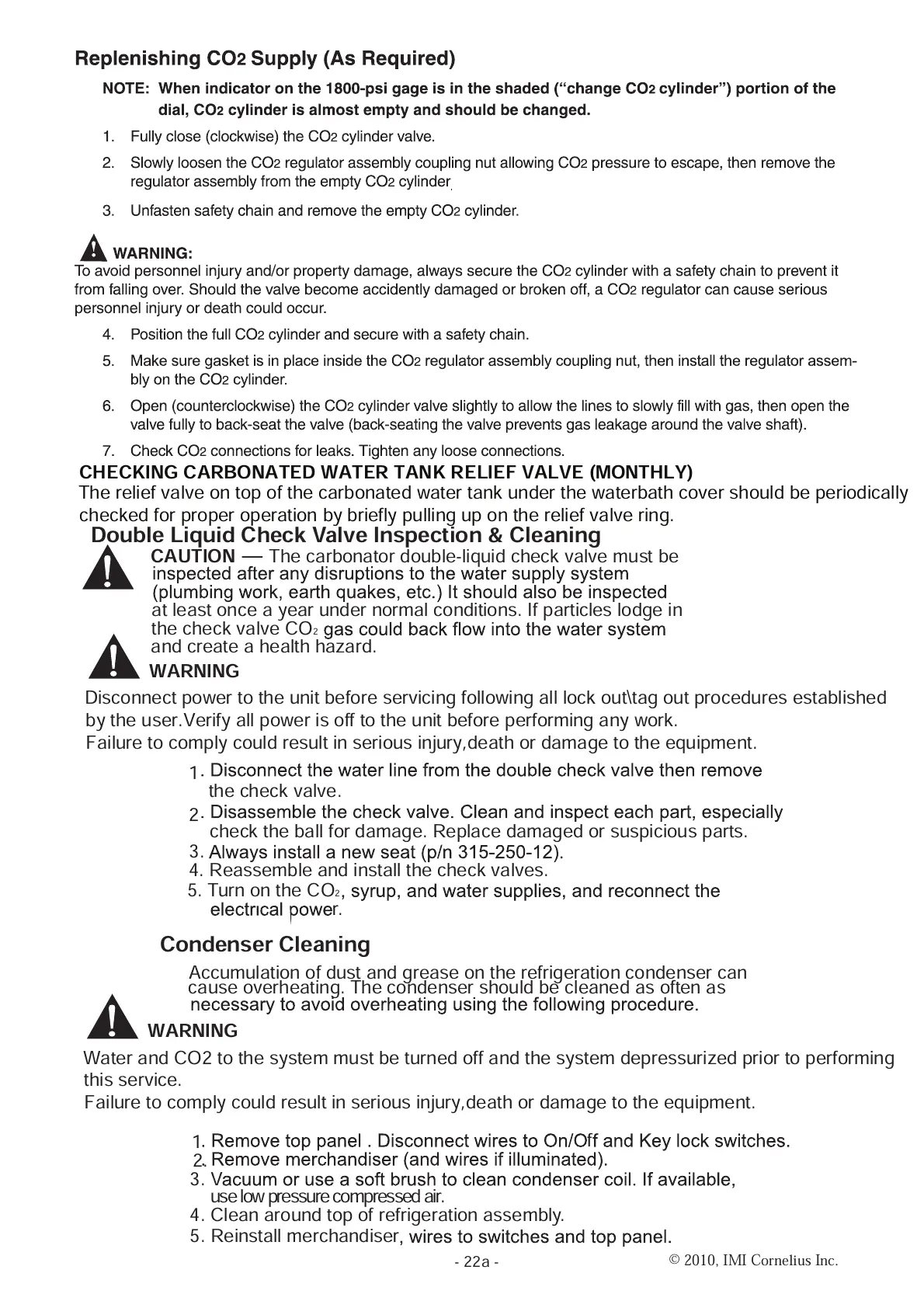 — The carbonator double-liquid check valve must be
