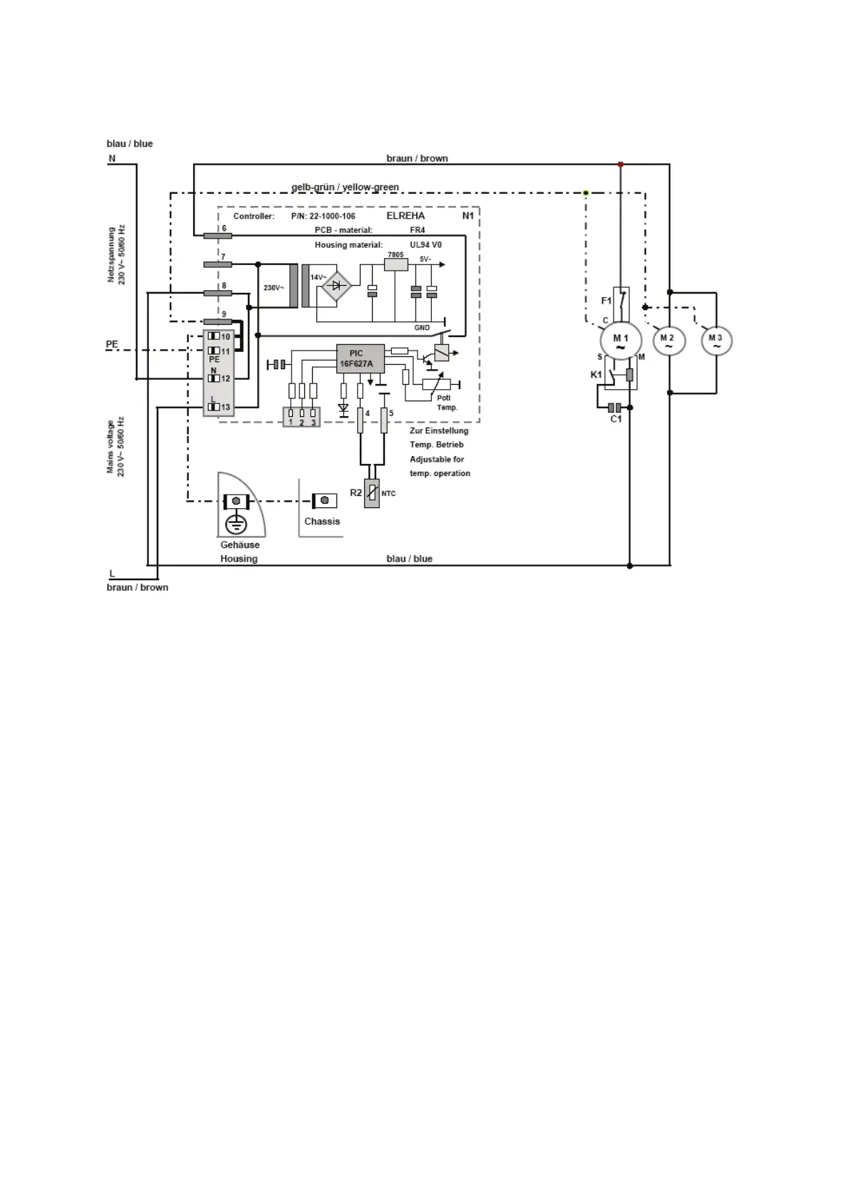 K1 Starting Relay 11; 12; 13 Mains Voltage Input