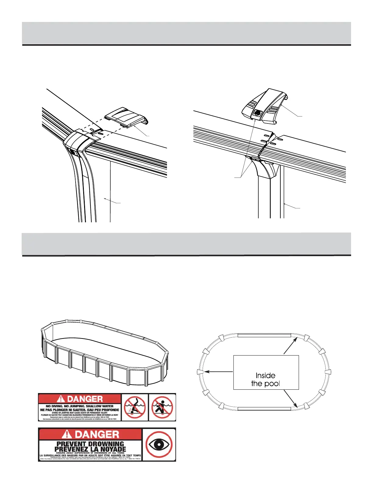 Install the four (4) safety labels (DANGER) supplied with your pool