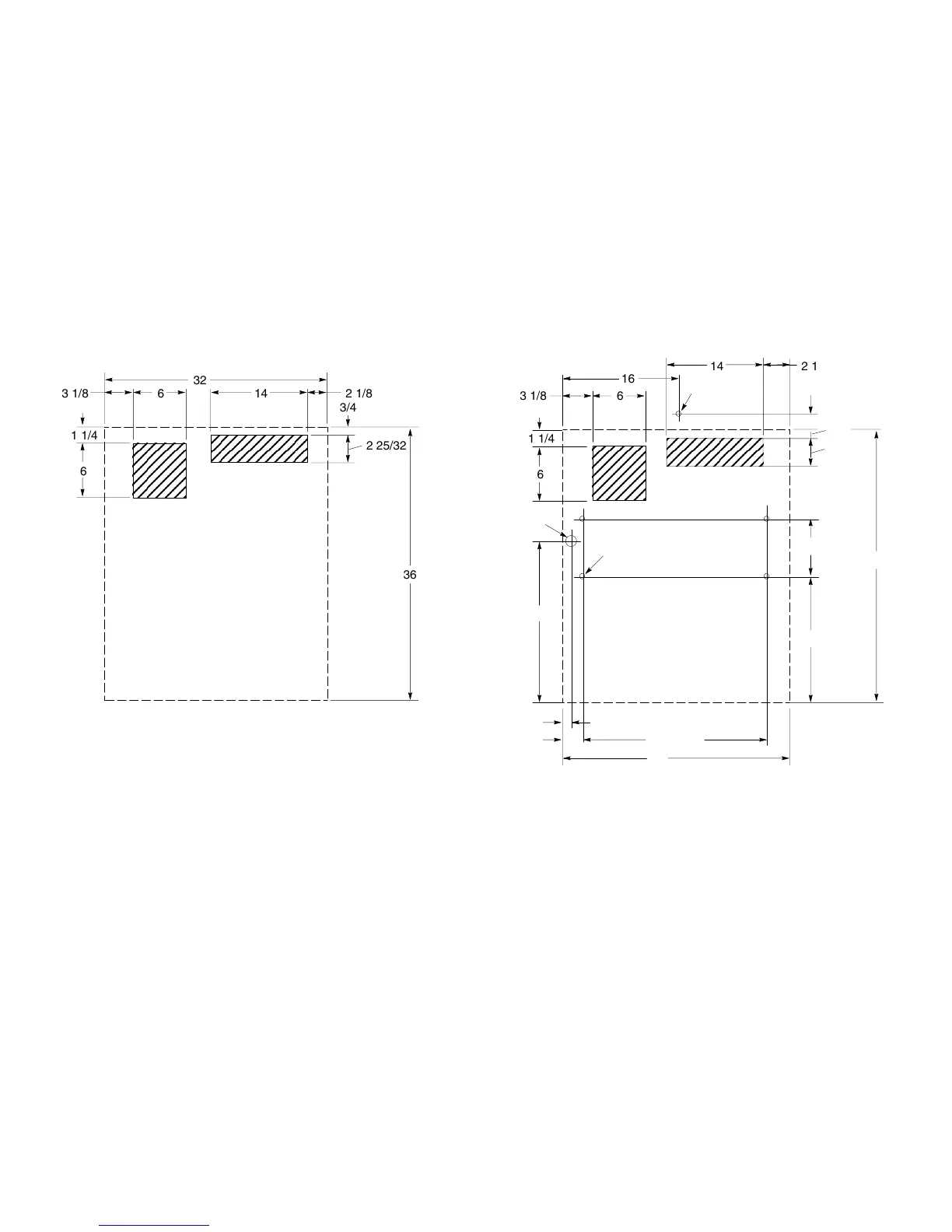 1. SHADED AREAS INDICATE OPENINGS IN CABINET