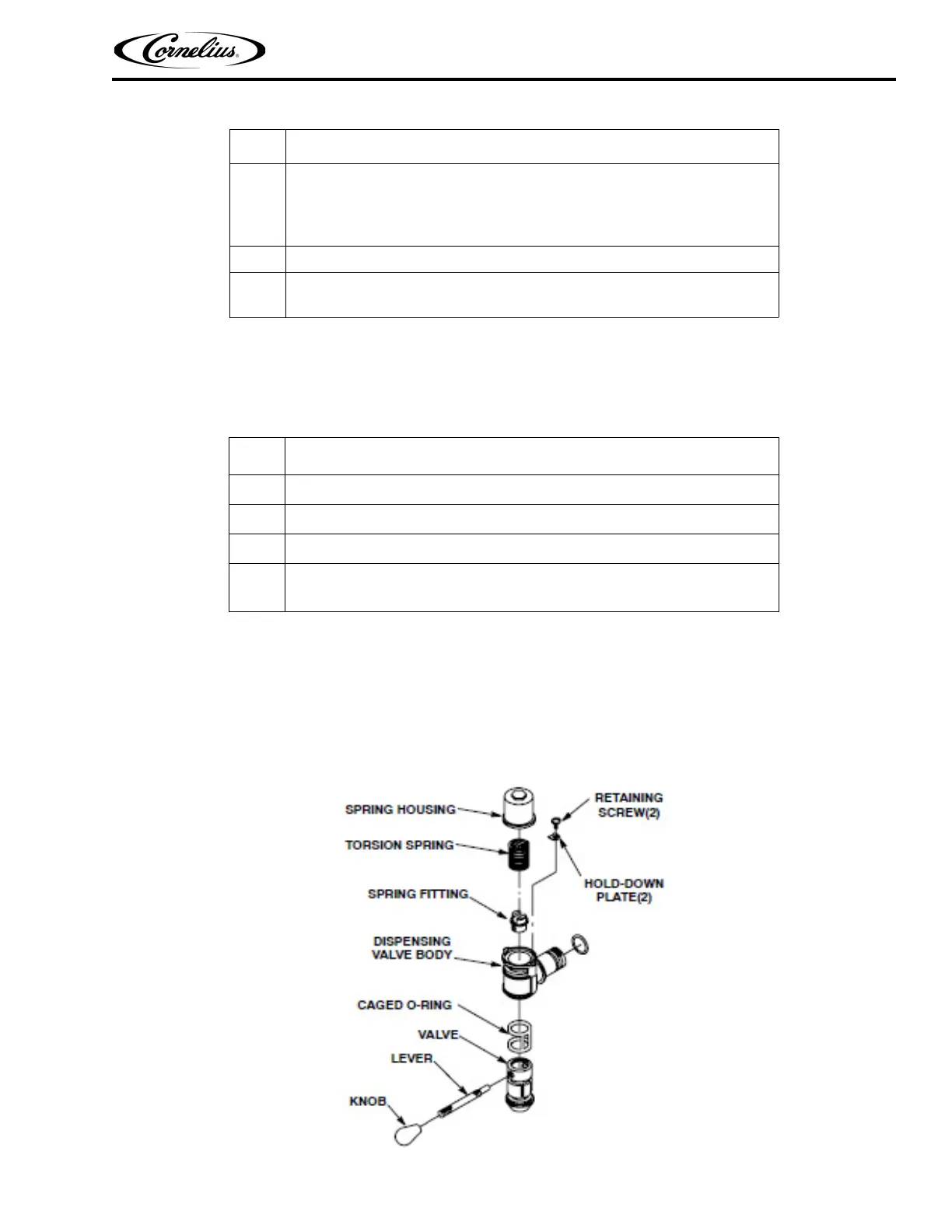 NOTE: Dispensing valves with caged o-rings should be serviced (lubricated) every six months and o-rings