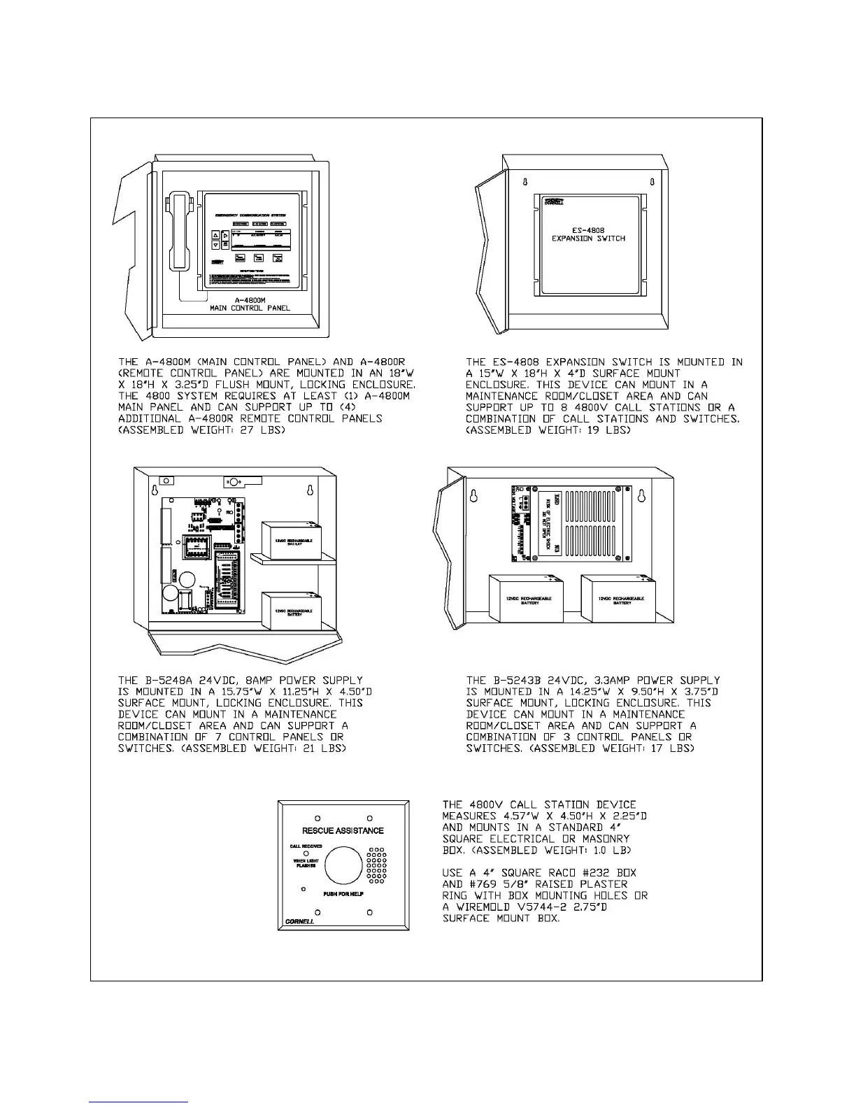 Cornell 4800 series - 4800 System Components; Control Panel and Expansion Switch; Power Supply Units; Call Station Unit