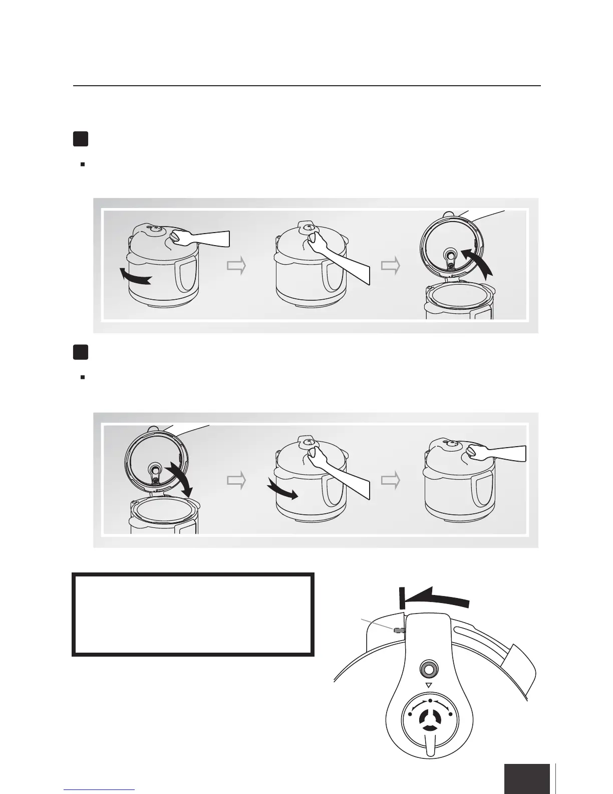 When the Lid of the cooker is at the closed Lid position, hold the Handle and turn it clockwise