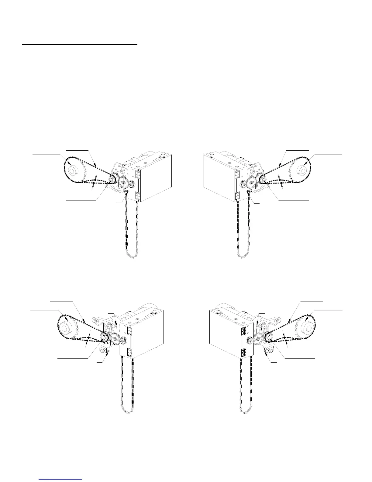 1. Adjust the drive chain by tilting or move the operator so that there is about 1/4” of slack when the