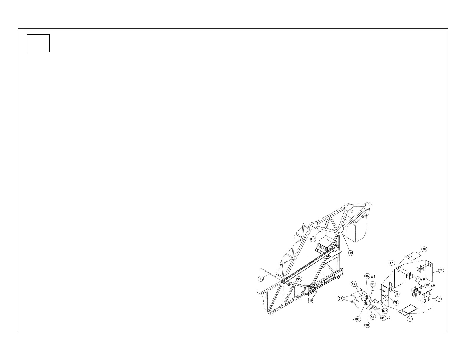34) PLEASE NOTE: Glue Outside Railings (2x 89) to the outside of the Platforms; Glue Railings 87 and