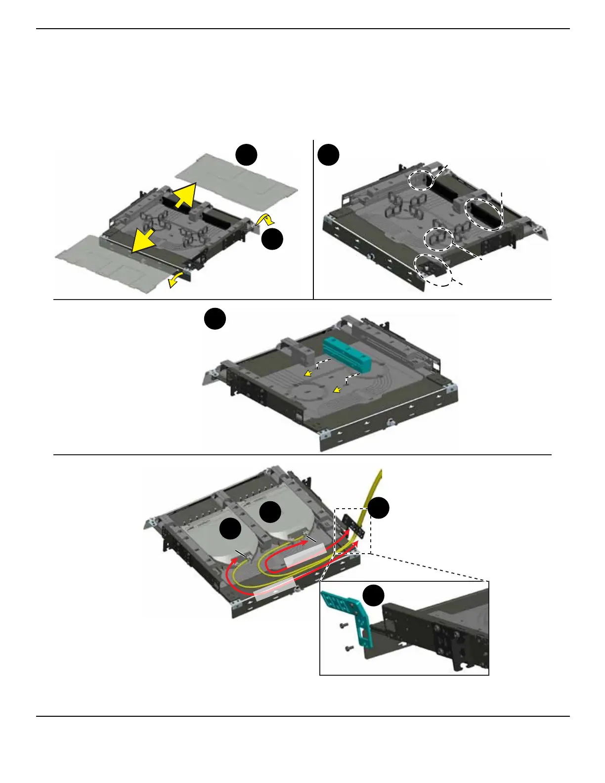 It is not necessary to remove the sliding tray to install cassettes into the housing.