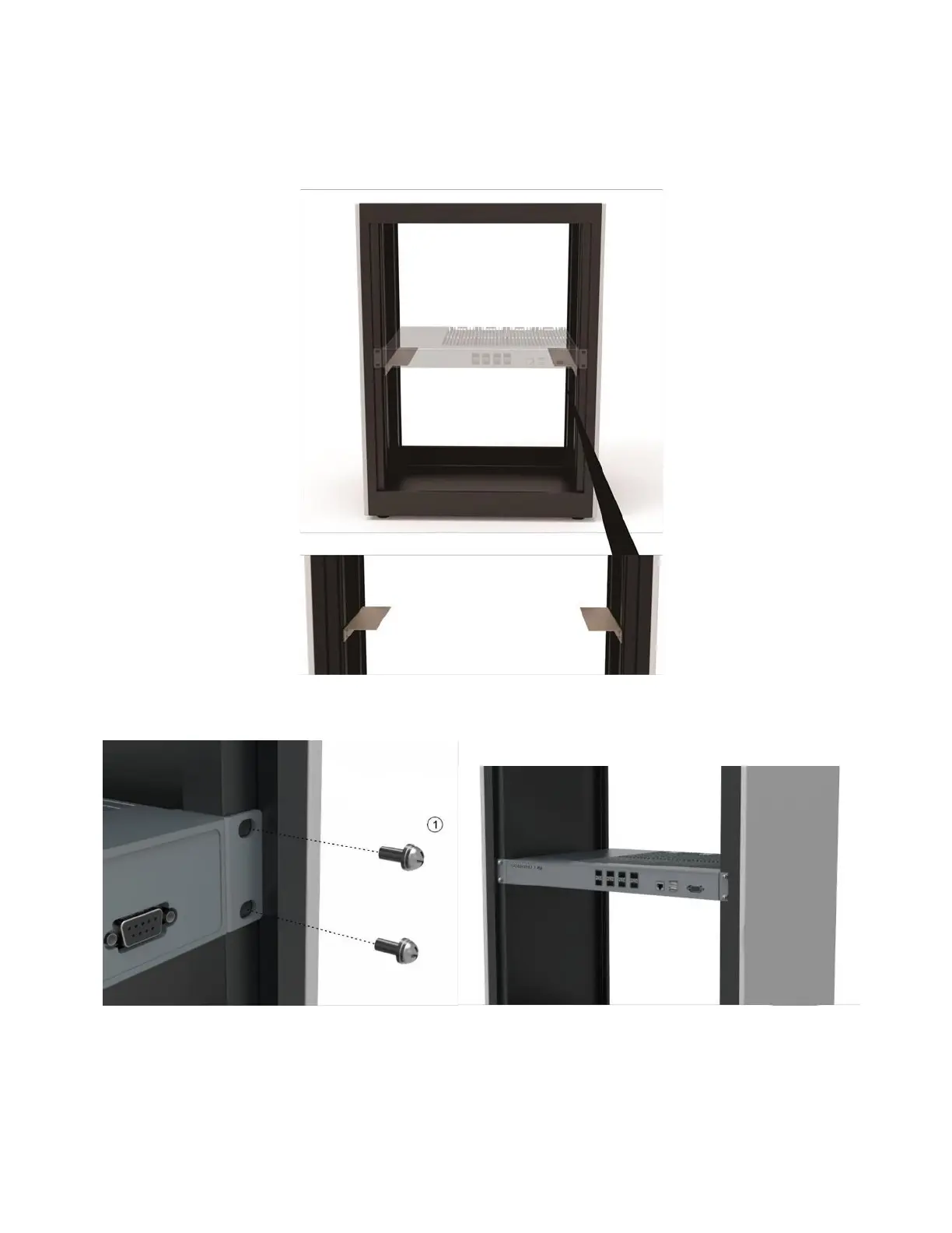 Place the AU in the rack and secure the AU using 2 screws M6×16 on both side and the Phillips screwdriver.