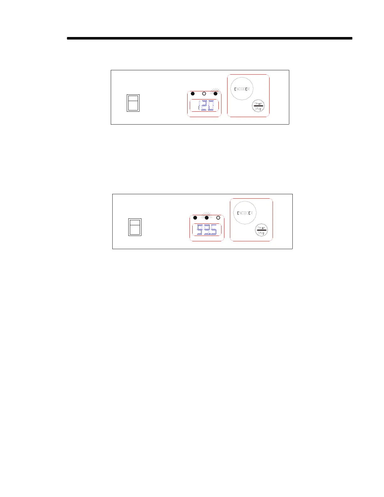 Rotate the encoder knob ONE CLICK right (+) or left (-) to view the set value for RPM during