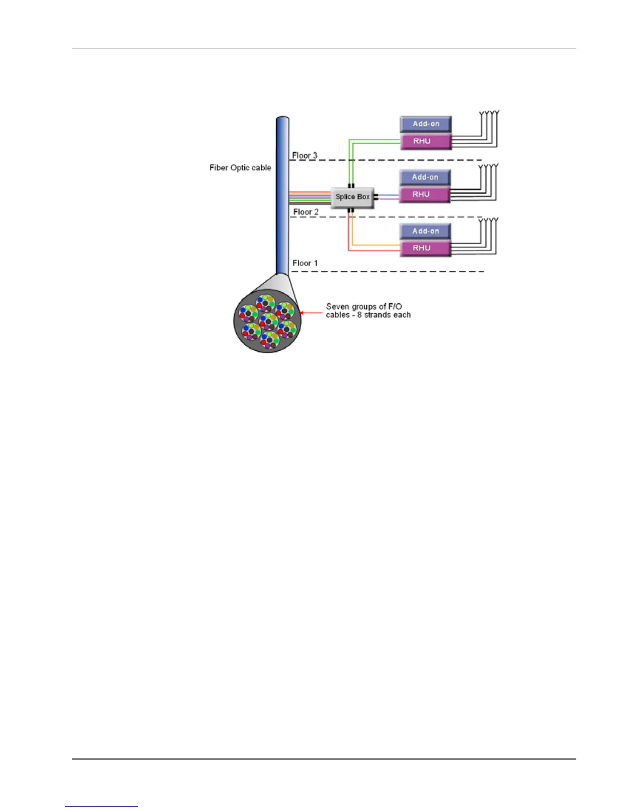 • On each floor - the antennas are connected to the RHUs using coax cables.
