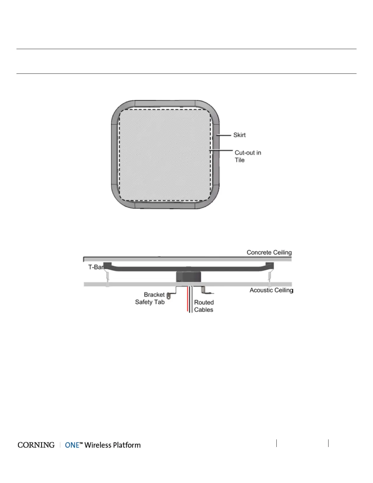 • Below Ceiling – 1-in minimum between ceiling tile and RAU (shown in Figure 5-56)
