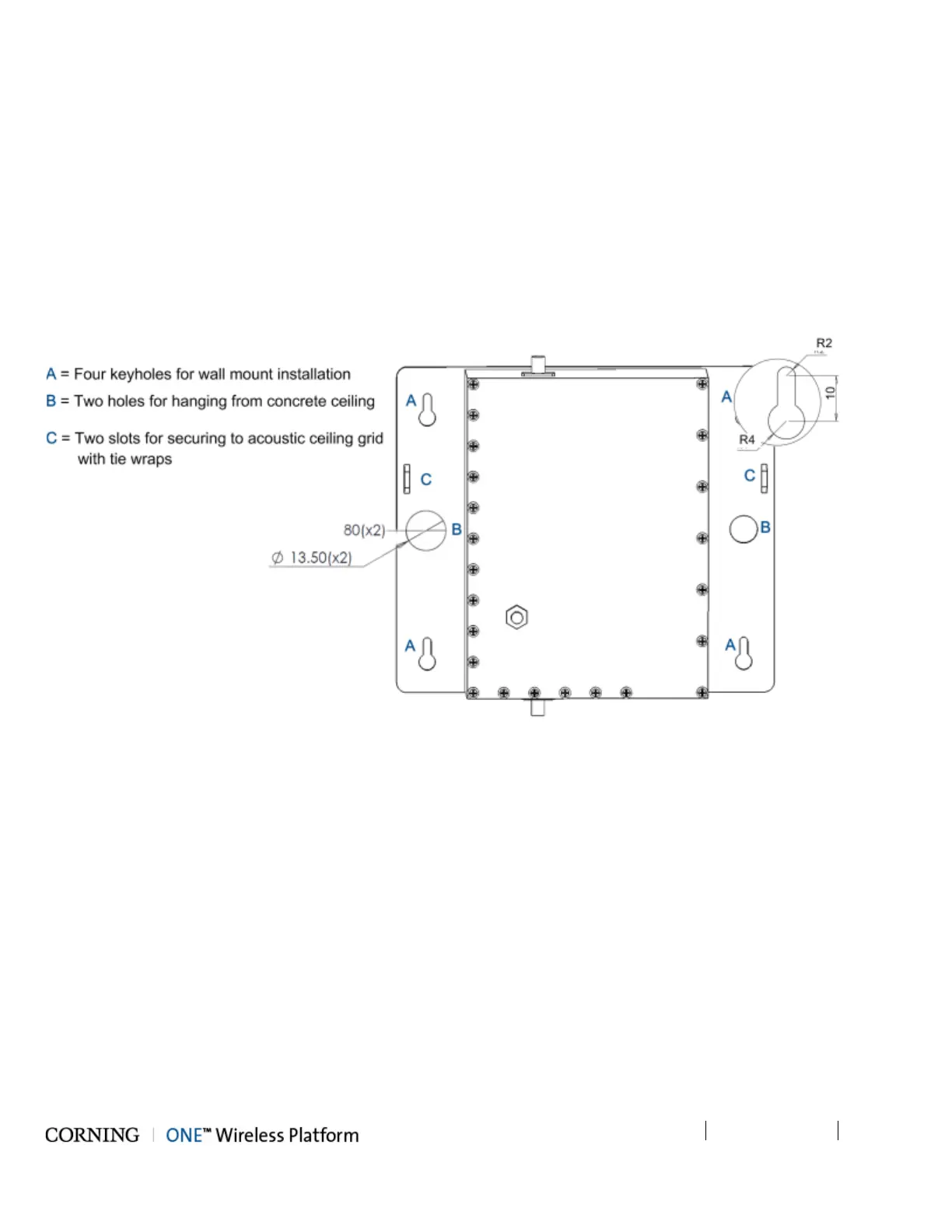 • The Cavity Filter mounting bracket supports wall/ceiling/acoustic ceiling installations. See Figure 5-73.