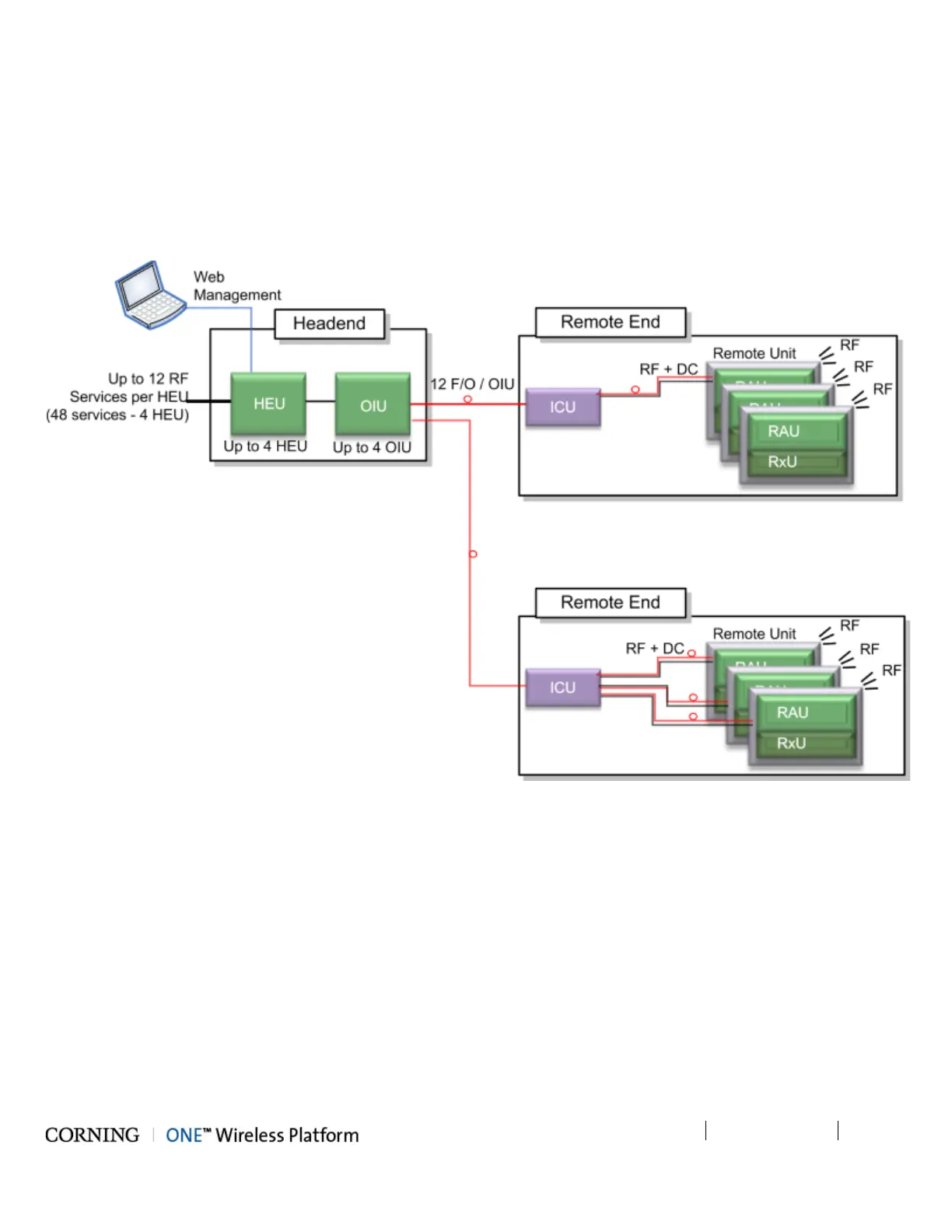 The optic fibers at the OIU are routed to the ICU (Integrated Centralized Unit) at the remote end. From the ICU the optic fibers