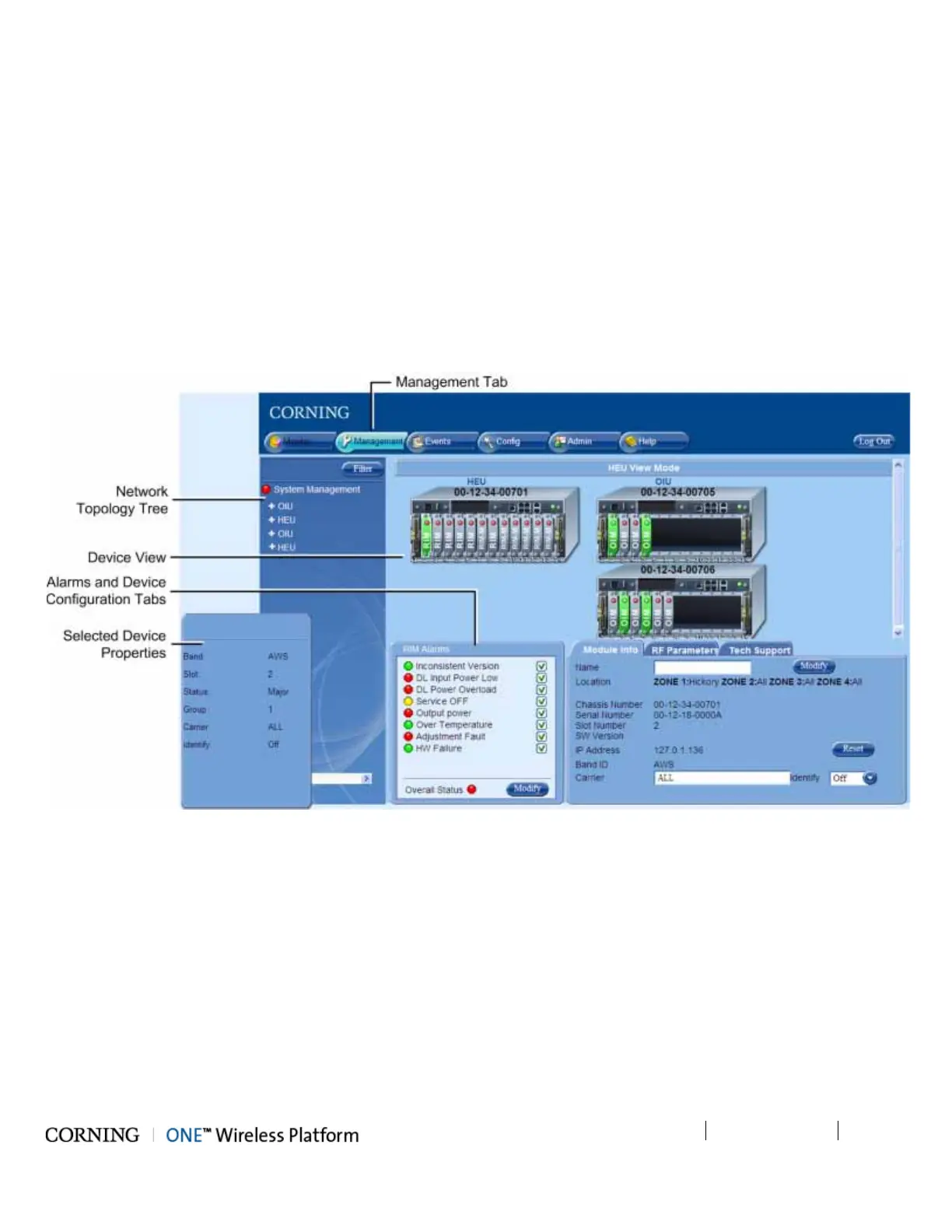• Device Configuration Tabs - device specific which include the configurable parameters (e.g. service control, RF parameters)