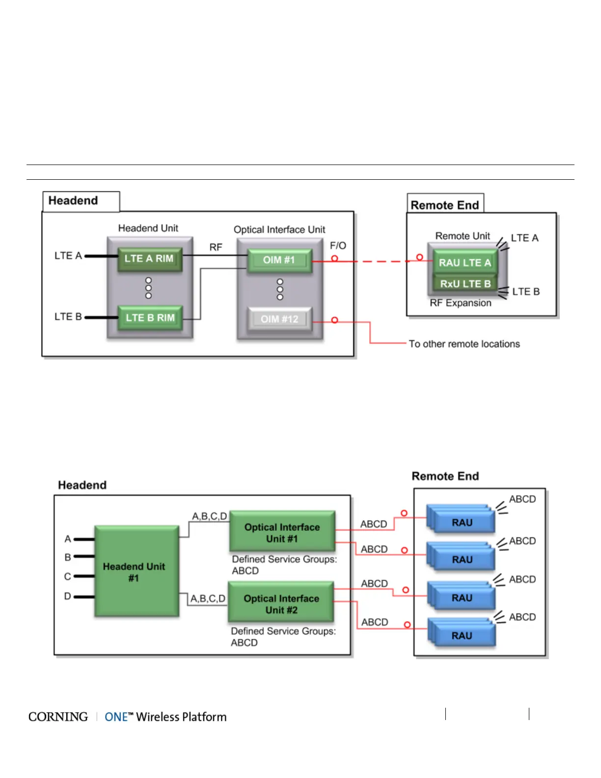 conditions the services and feeds them to two OIU systems for conversion to optic signals. Each OIU supports up to 36 RAU