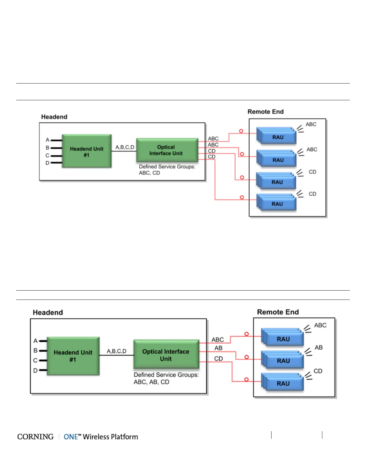 service groups in any combination and the corresponding services are routed from the OIM to its hosted RAU units.