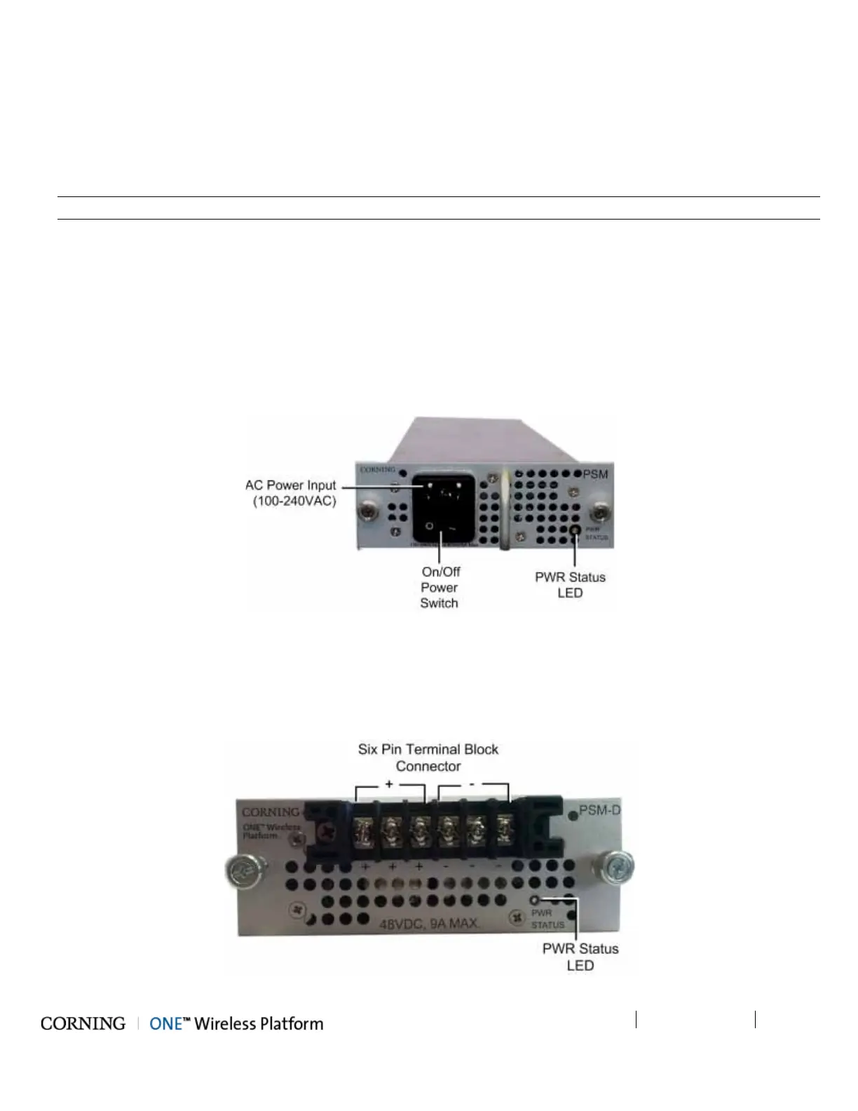The PSM-DC power source rating is 48 V DC; 9 A Max.; 300 W. The PSM-DC includes a six pin terminal block connector,