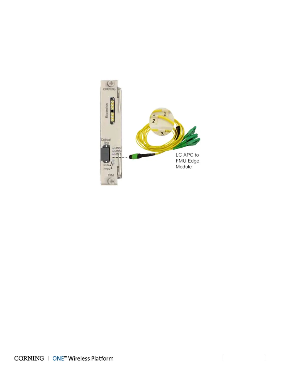 • Remove the protective plastic covers and connect the (3) LC APC connection fibers to the FMU Edge module LC APC