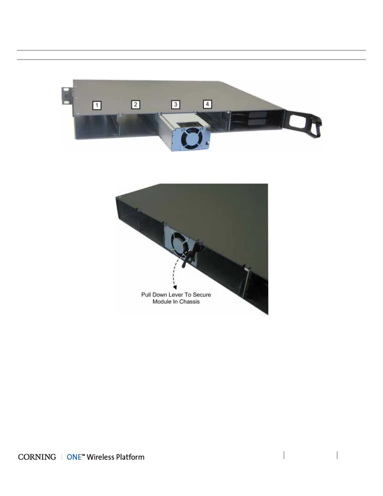 3. Secure by pulling the lever downward until it “clicks" and module is flush with chassis rear.