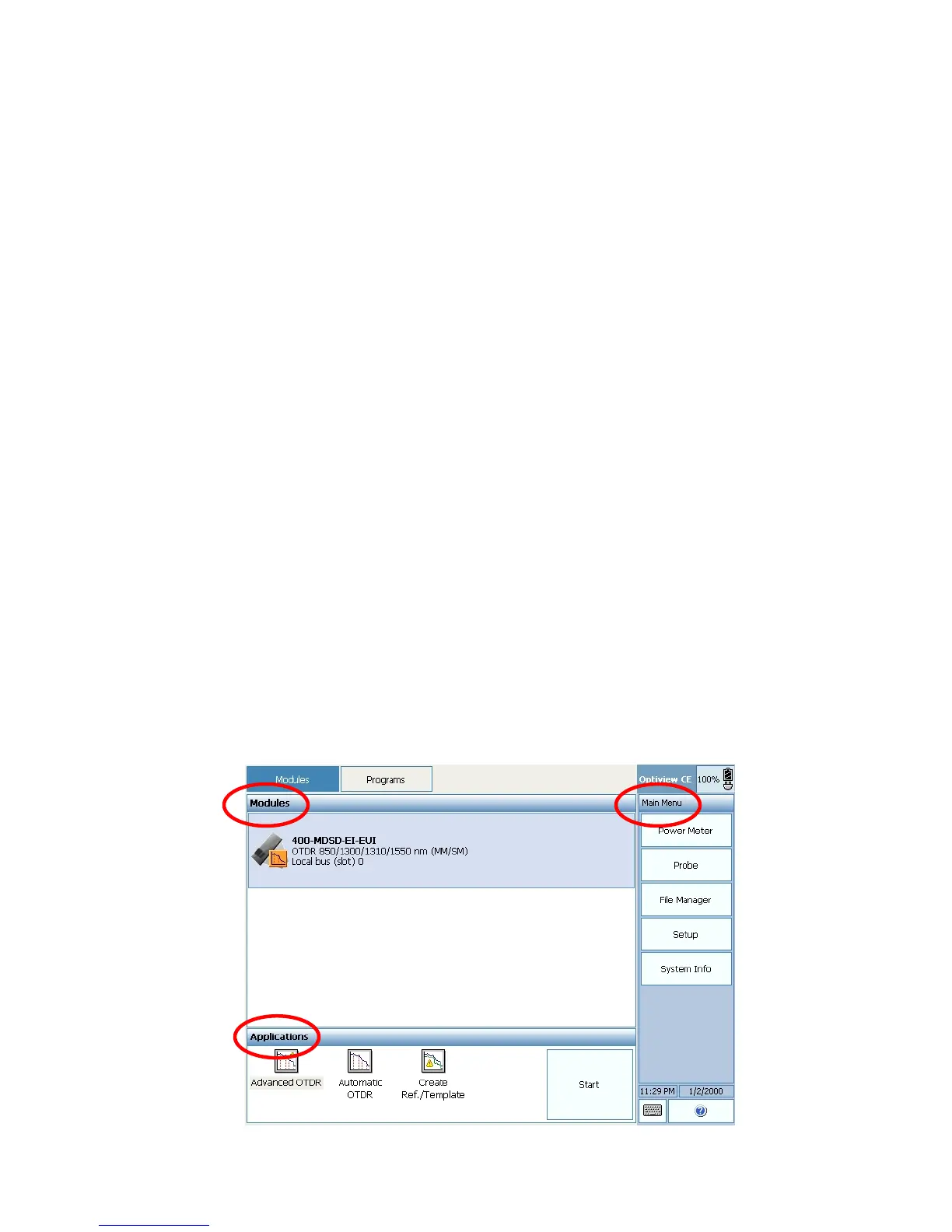To start a VFL/Power Meter or Connector Probe application, look under the main