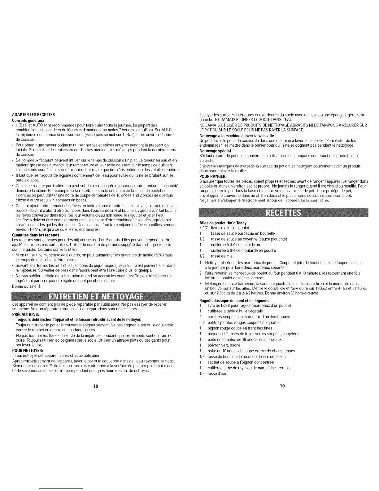• Si on utilise une mijoteuse de 6 quarts, on peut augmenter les quantites de moitie (50%) mais