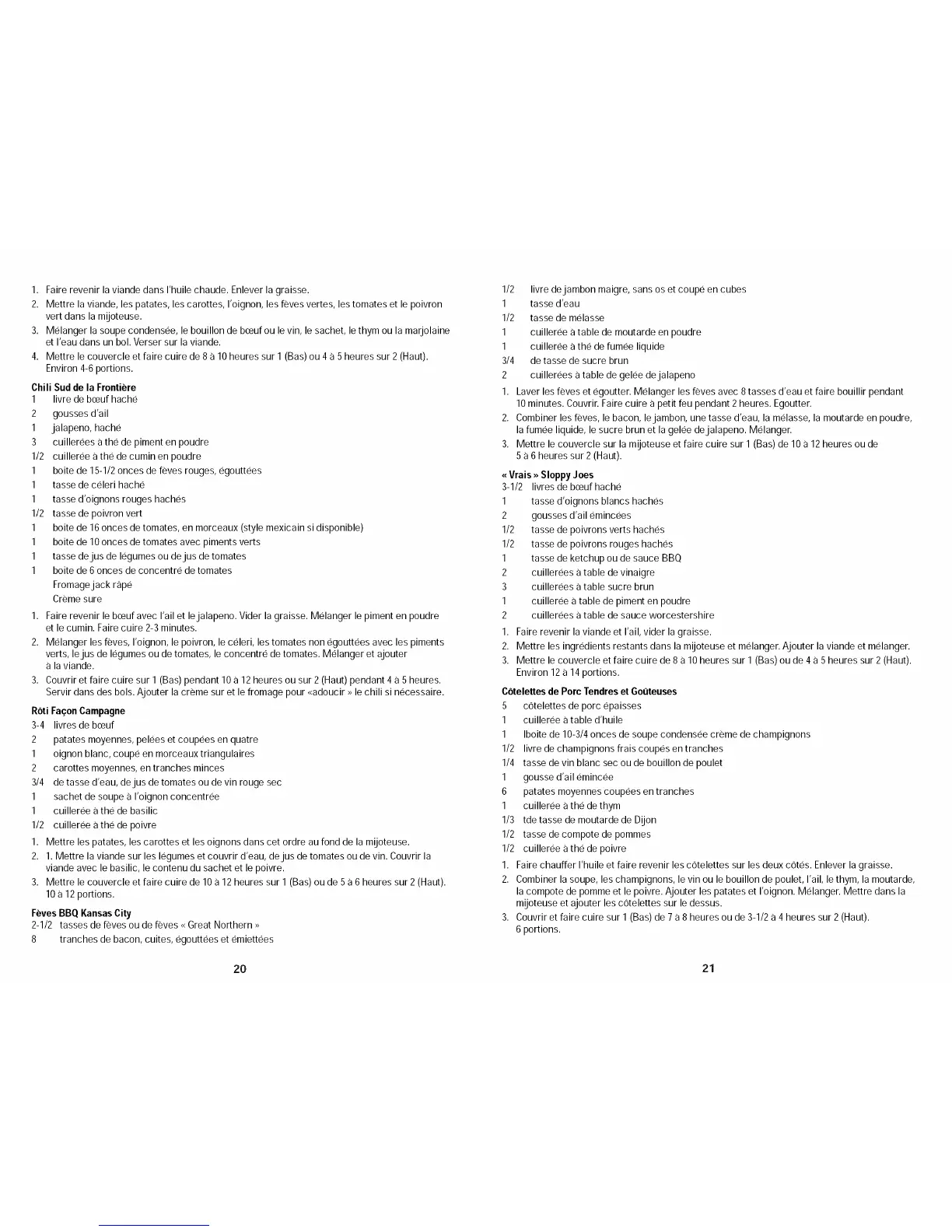 3. Couvrir et faire cuire sur 1 (Bas) de 7 a 8 heures ou de 3-1/2 a 4 heures sur 2 (Haut).
