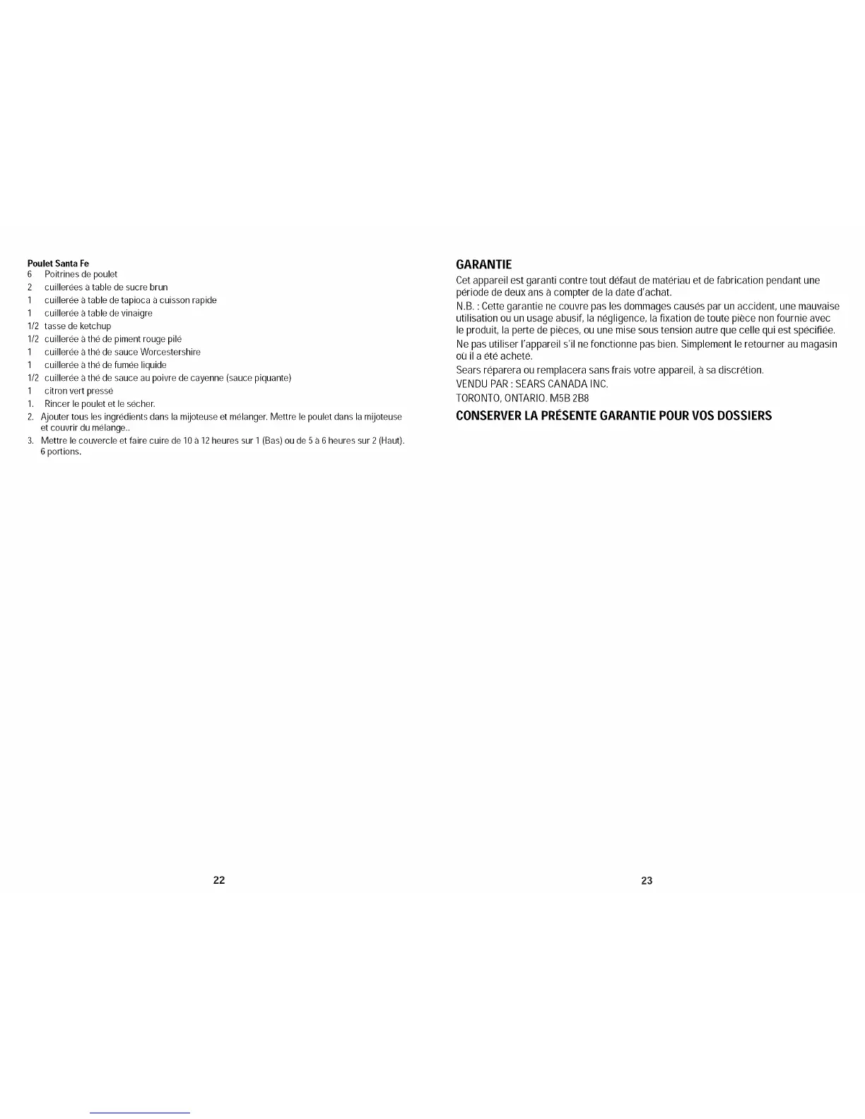 Searsreparera ou remplacera sansffais votre appareil, a sa discretion.