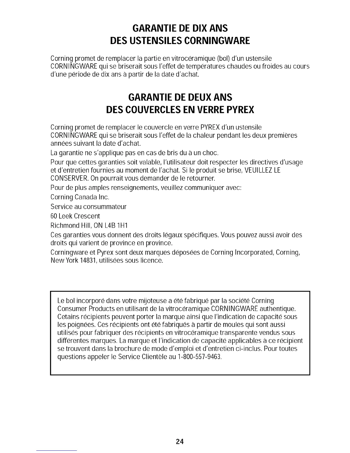 Corningware et Pyrex sont deux marques deposees de Corning Incorporated, Corning,