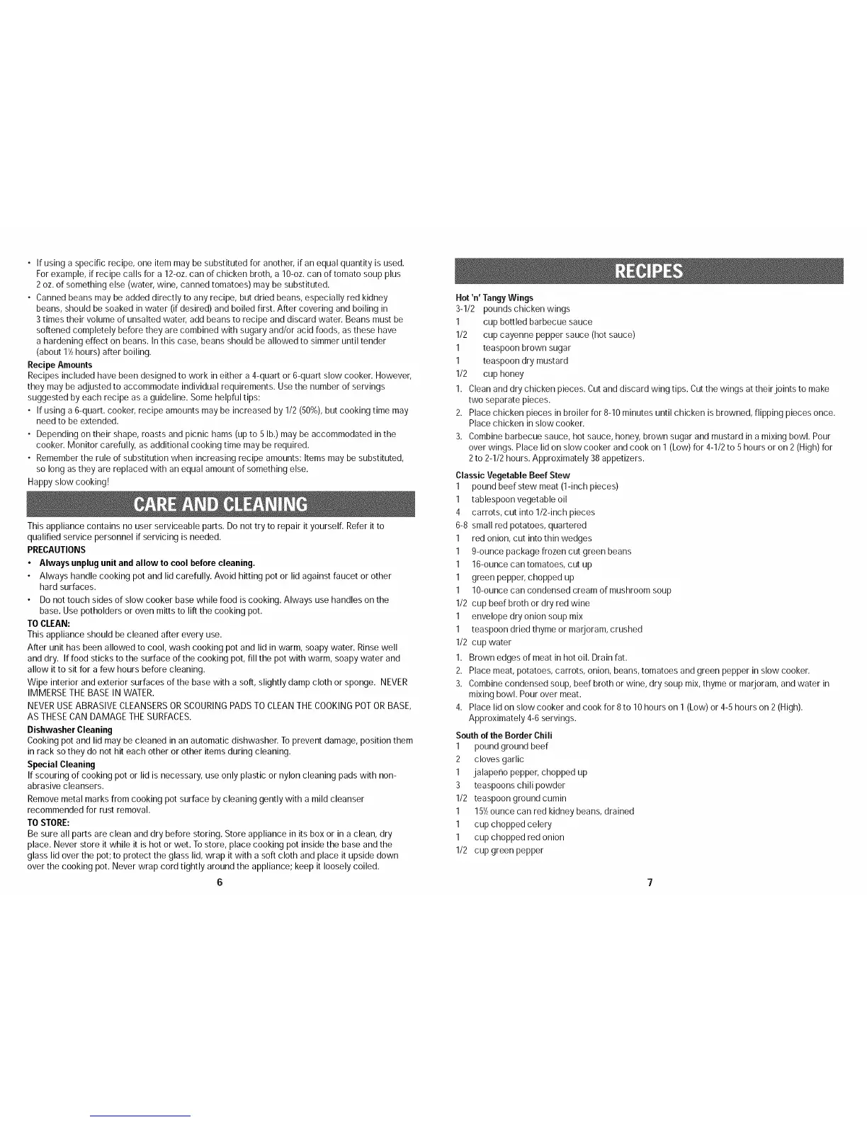• If using a 6-quart. cooker, recipe amounts may be increased by 1/2 (50%), but cooking time may