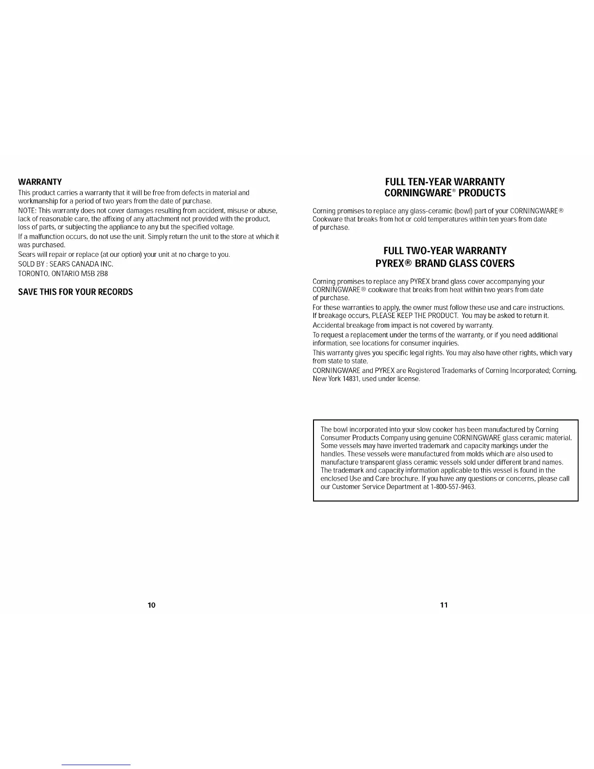 CORNINGWAREand PYREXare RegisteredTrademarks of Coming Incorporated; Coming,