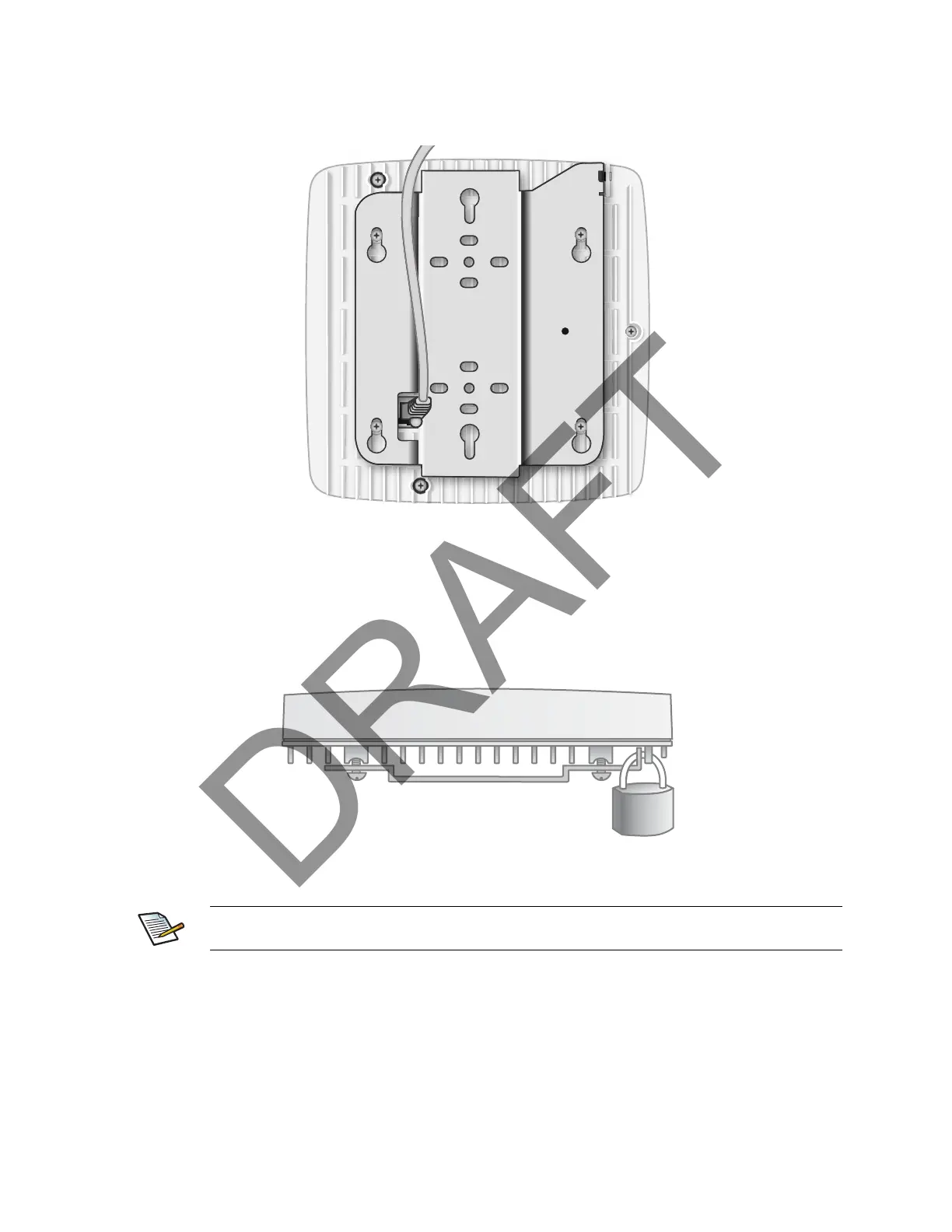 Step 1 Attach a padlock or cable tie wrap into the provided slot to secure the unit to the mount
