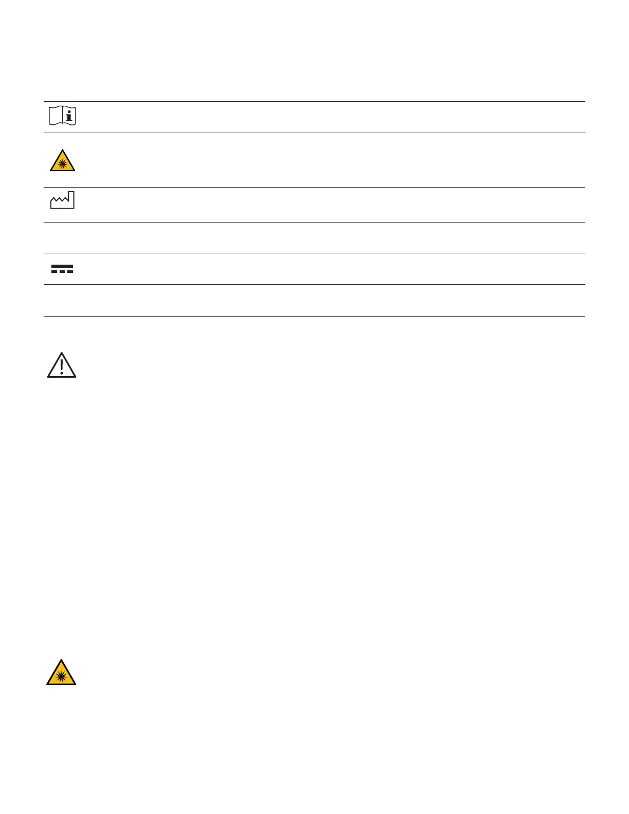 Optical safety symbol. There is an optical risk associated with the use of the device. Read the Instruction Manual for