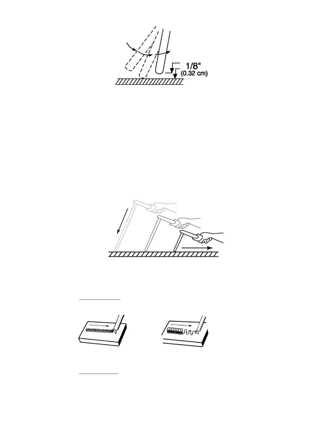 (eggs frying). To lay a weld bead, only two movements are required: downward (as