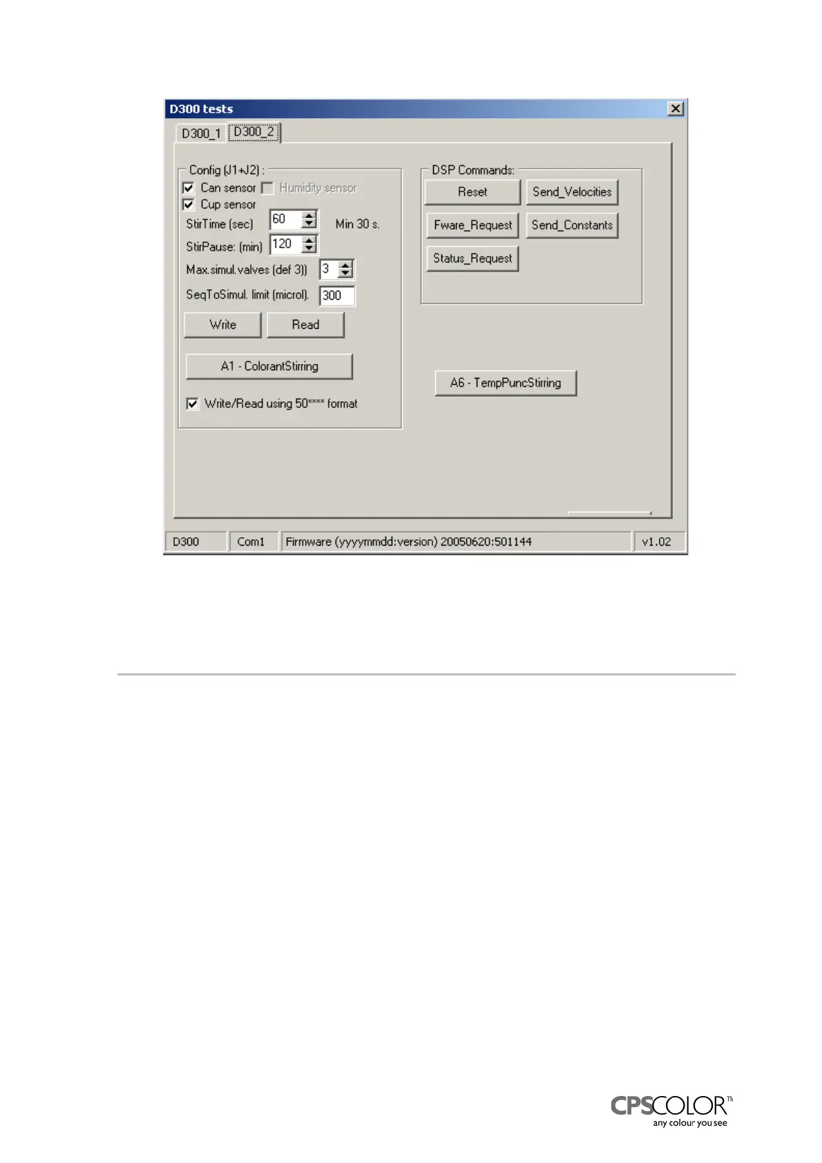 the stirring time and stirring pause intervals for all colorants, Write button updates selected