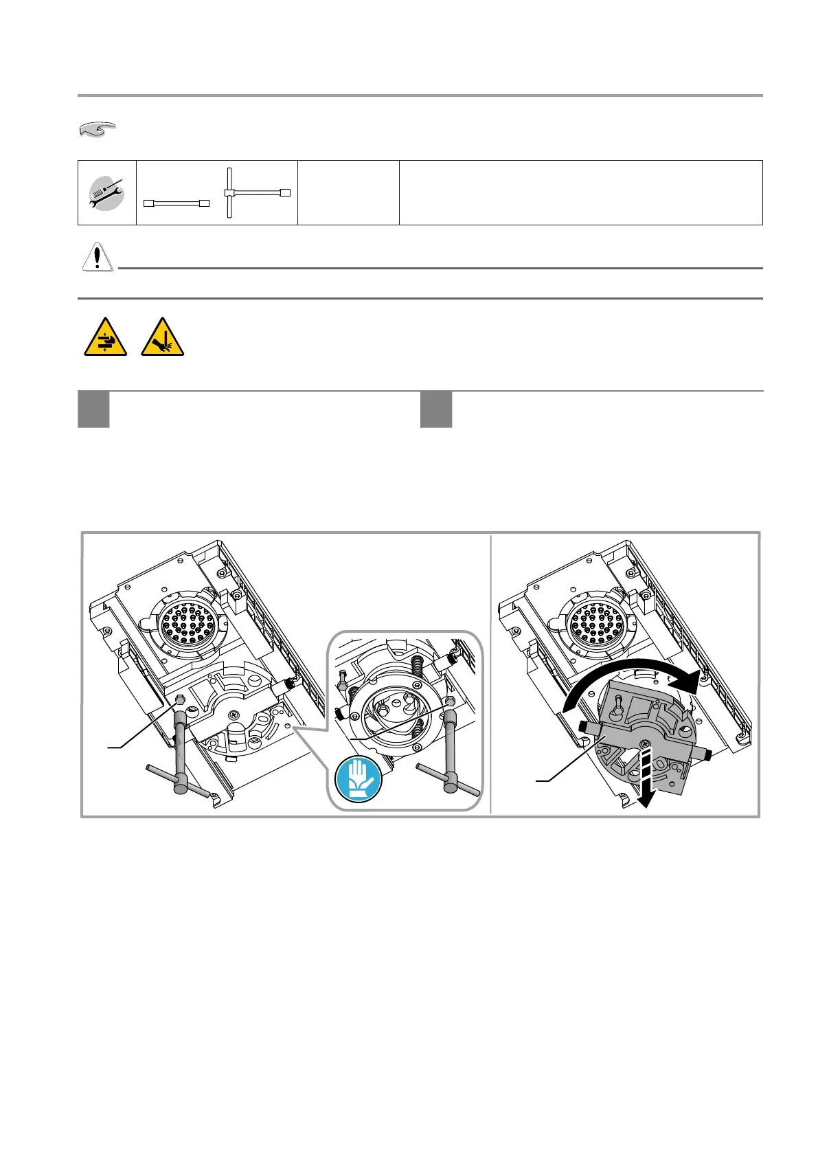 4. Loosen the screw A and the second screw B (if present), and remove the sponge support C by turning it